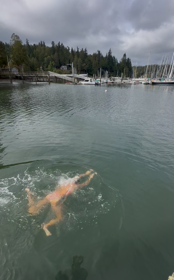 Hann förresten med en grej till. Ännu ett dopp i fina Hidden Cove! Det stället är både ”hidden” och magiskt. Märkligt nog bara jag som var i. De två som satt och fiskade skrämde jag tydligen bort för de gick när vi kom. Tippar på att det var ca 12 grader men det är alltid svårt att veta. Salt är det i alla fall. Man flyter som en kork!
