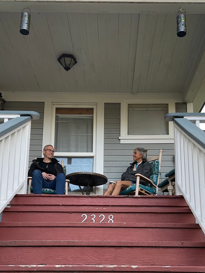 Och här är det! Huset med verandan som är ”vårt” en liten stund. Inuti är det helt bedårande fint och hela området är som i den mysigaste feelgood-movien från någon amerikansk småstadsidyll. Dvs en sån som vi är i!
